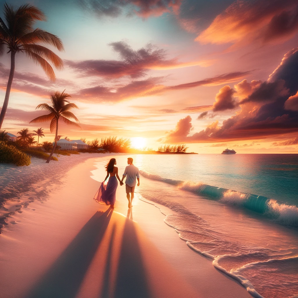 Experience a romantic getaway on the pristine beaches of the Bahamas, where every sunset feels like a private show.